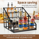 Beyond the kitchen, this syrup stand can be placed in living rooms for water cups, bathrooms for toiletries, perfumes, and cosmetics, and even in cake shops for cream bottles. Its multi-scene usability expands market demand, making it a versatile product for wholesalers to stock and retailers to sell.