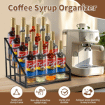 This storage rack maximizes space in cluttered cabinets and pantries, doubling as a coffee bar decor, wine display stand, and kitchen spice organizer. Its compact design is ideal for small kitchens and commercial counters, making it a practical choice for both residential use and small businesses like coffee shops and bakeries.