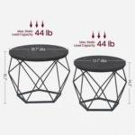 This 2-piece modern round side table set, available in two compact sizes (19.7”Dia. x 15.7”H/50*40cm & 15.7”Dia. x 14.2”H/40*36cm), is a space-friendly furniture solution tailored for small and medium home furniture wholesalers, retailers, and e-commerce sellers. Crafted from quality particleboard and a sturdy steel frame, it features a chic black geometric design, easy assembly, and flexible use (together/separately)—ideal for small apartments, living rooms, and bedrooms.